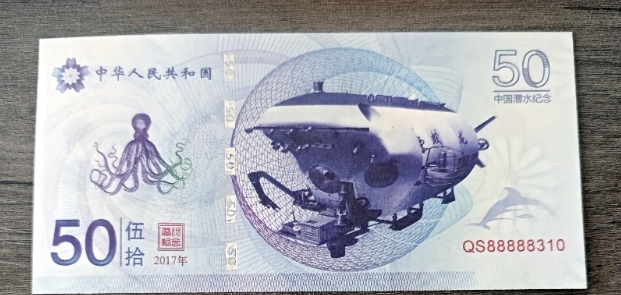 #banknot #kolekcjonerski #Chiny #ChińskaRepublikaLudowa #pamiątkowy #numizmatyka #batyskaf #Jiaolong #nurkowanie #głębinowe #ocean #morze #technologia #prezent #unikat #rarity #kolekcja #azjatyckie