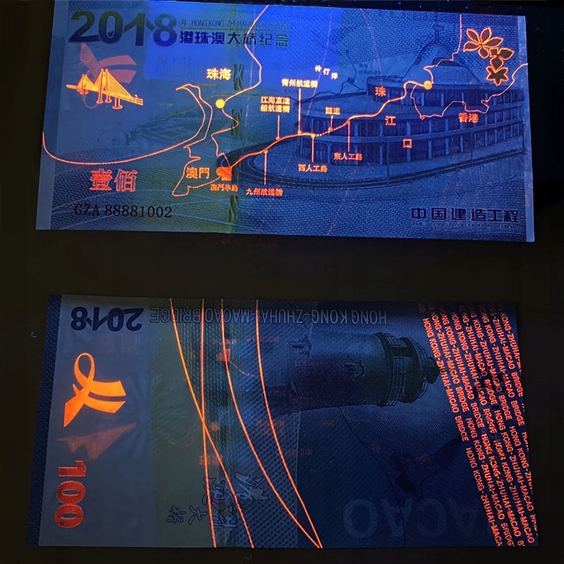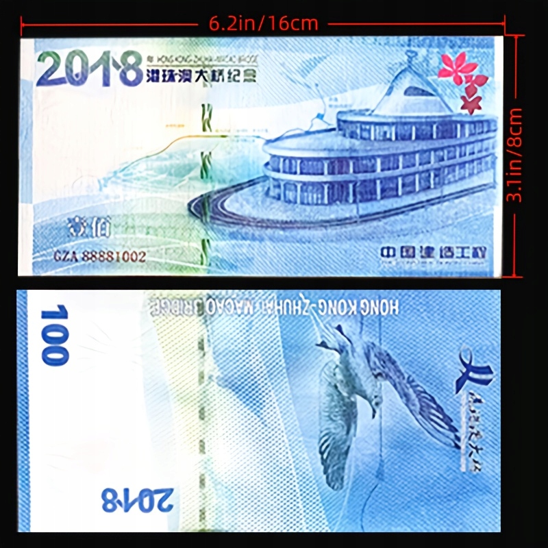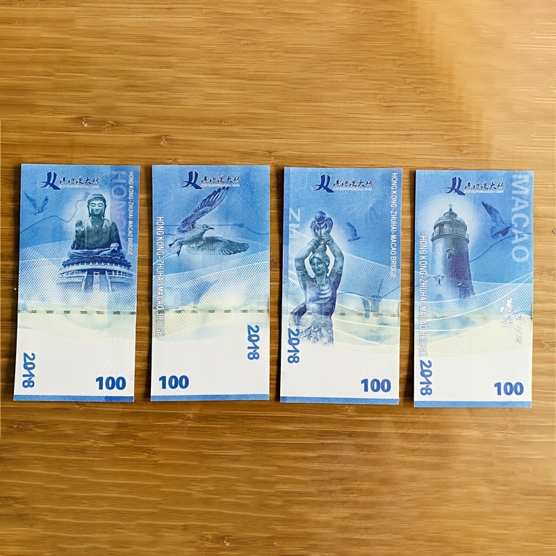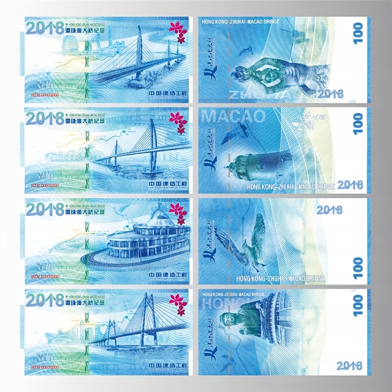 - Prawdziwe arcydzieła inżynierii i sztuki: Banknoty upamiętniają Most Hongkong-Zhuhai-Makau, który jest uważany za jeden z cudów nowoczesnej inżynierii. Na banknotach przedstawiono zarówno samą konstrukcję mostu, jak i fragmenty z nim związane, w tym m.in. morski tunel, sztuczne wyspy oraz statek.