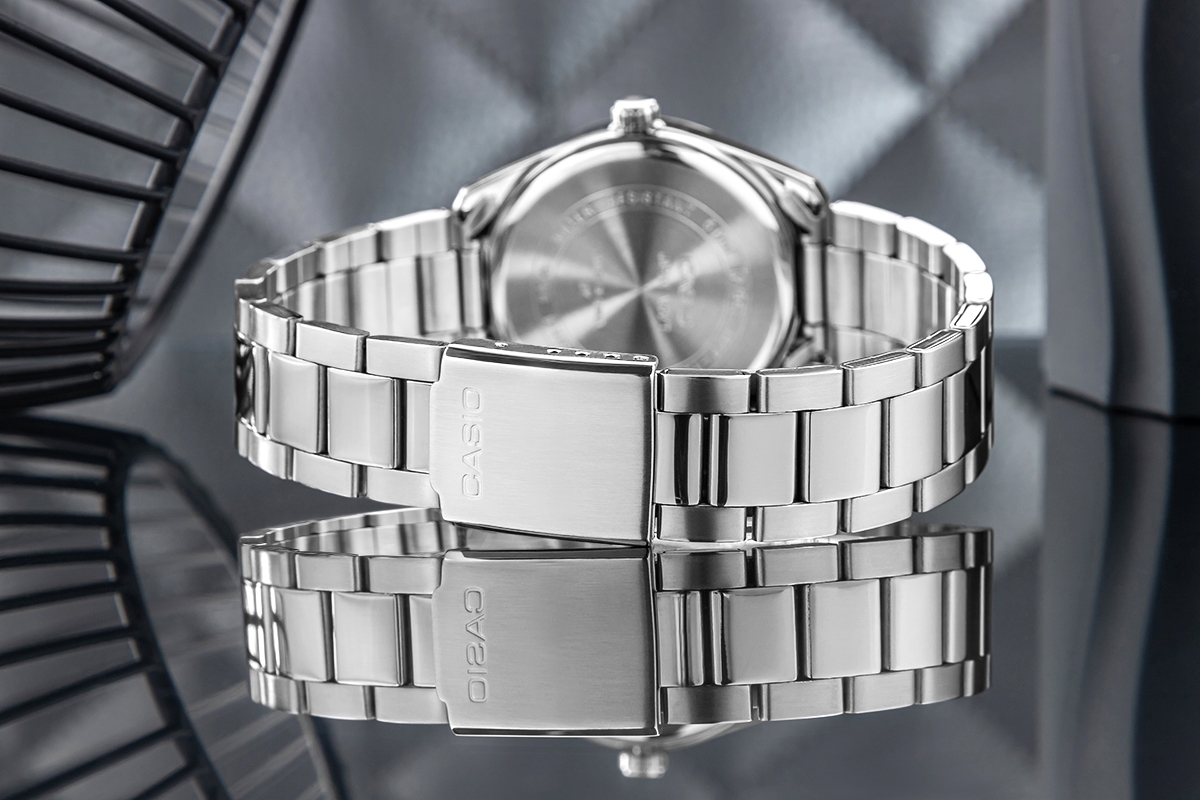 Krystalicznie biała tarcza, połysk stali i precyzyjne detale tworzą zegarek, który mówi więcej, niż pokazuje. CASIO MTP-1302D-7A1VDF to codzienna elegancja bez zbędnego hałasu – pewna, dojrzała, ponadczasowa. Stalowa koperta i bransoleta nadają mu uniwersalnego charakteru – świetnie sprawdzi się zarówno w stylizacjach biznesowych, jak i casualowych. Wyrazisty datownik umieszczony na godzinie 3 oraz fluorescencyjne wskazówki zapewniają doskonałą czytelność, także po zmroku. Wodoszczelność na poziomie 50 metrów pozwala na bezproblemowe użytkowanie zegarka na co dzień – również w deszczowe dni czy podczas przypadkowego kontaktu z wodą.